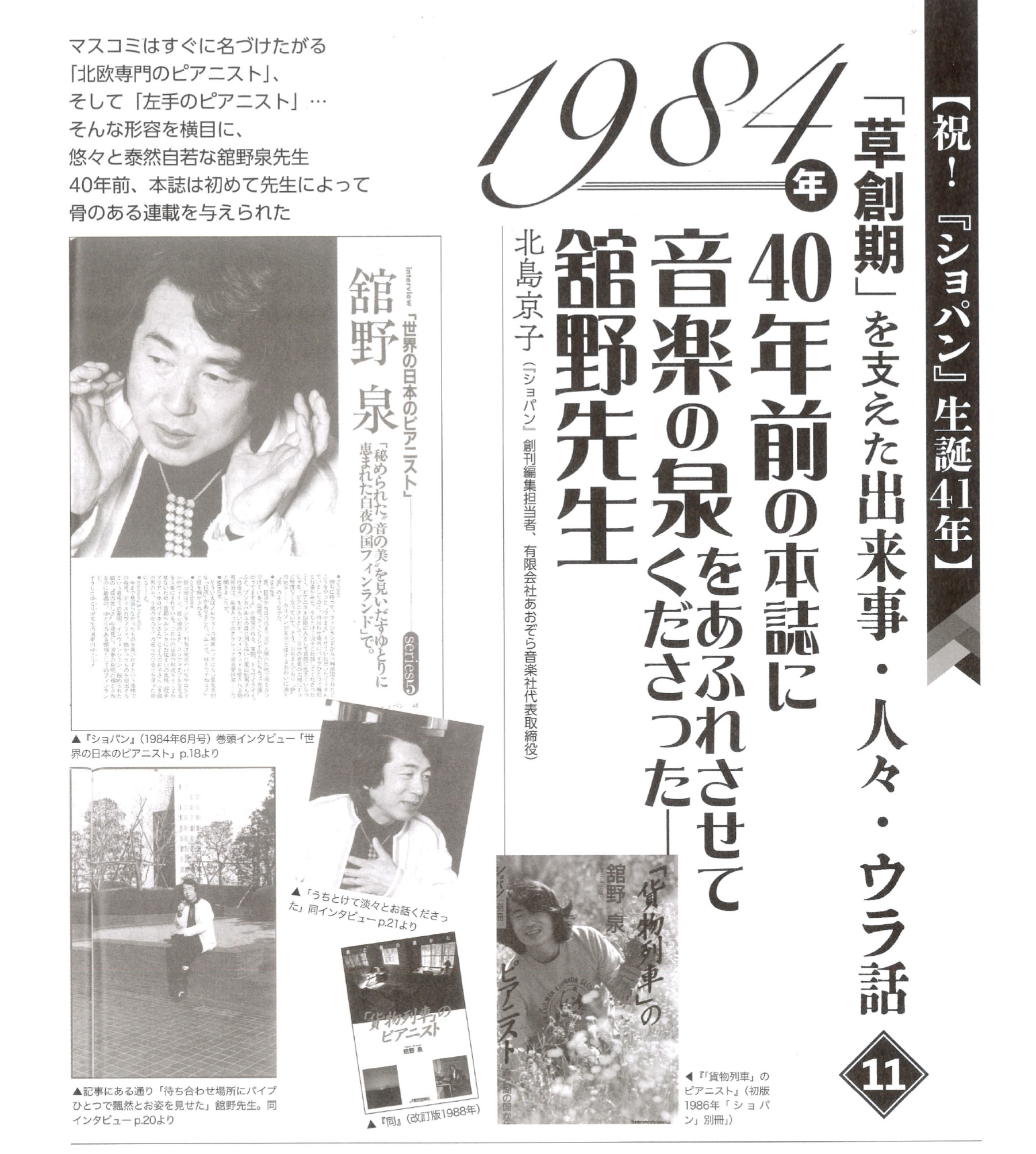 結局、内藤社長は、世界各地に演奏旅行で超多忙のフィンランドに住む舘野先生を何とかクドき落とし、「連載をご快諾してくださった」と満悦の体。半年後の1985年1月号から「舘野泉のフィンランド便り」の連載が開始された。私は原稿受取りの担当となった。